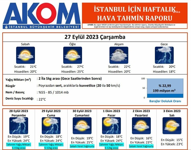 Sonbahar mevsiminde kara ile deniz suyu sıcaklık farkı nedeniyle yağışın şiddeti ve miktarı sel veya taşkınlara sebep olabiliyor. İBB ekipleri bu nedenle cadde ve meydanlardaki mazgal, baca ve dere temizliklerini yapıyor. Caddeleri su altında bırakan çöp ve benzeri maddelerin de yağış öncesi ilçe belediyeleri tarafından hızla toplanması da önem arz ediyor. İstanbul’da hava sıcaklıklarının 10 Ekim’e kadar mevsim normalleri civarı ila 1 ila 3°C altında seyredeceği öngörülüyor.