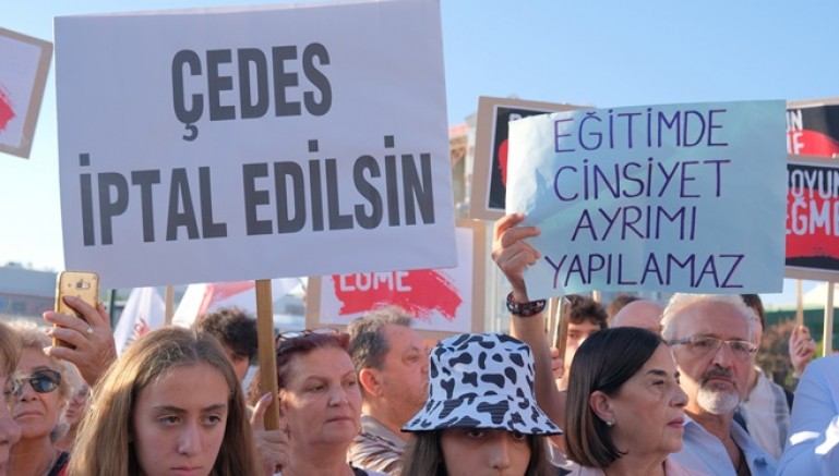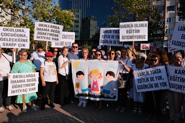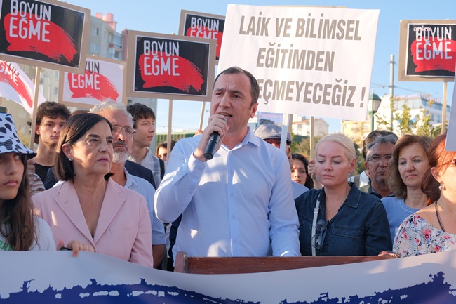 “Bugün, 100. yılını kutlamaya hazırlandığımız Cumhuriyetimizi korumak, Atatürk devrim ve ilkeleriyle kazanılmış hakları yaşatmak, güçlendirmek ve geleceğe taşımak için çalışan demokratik kitle örgütleri olarak artan tehditler karşısında laik ve bilimsel eğitimi savunmak için yeniden bir araya geldik. Milli Eğitim Bakanlığı, Diyanet İşleri Başkanlığı ve Gençlik ve Spor Bakanlığı arasında imzalanan, hukuka ve eğitim bilimlerine aykırı ‘Çevreme Duyarlıyım, Değerlerime Sahip Çıkıyorum Projesi İş Birliği Protokolü’ (ÇEDES) kapsamında, İzmir ve Eskişehir illerinde, İl Milli Eğitim Müdürlükleri ve Müftülüklerince yürütülen, 842 ilkokul, ortaokul ve liseye ‘Manevi Danışmanlık’ hizmeti adı altında imam, müezzin, vaiz, din hizmetleri uzmanı ve Kuran kursu öğreticisi görevlendirilmesi ve karma eğitimin hedef alınması bunun tüm ülkeye yayılmak istenmesi bir araya gelmemizi ve örgütlü olarak tepki göstermemizi zorunlu kılmaktadır.