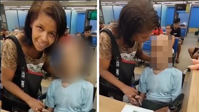 Videoda, Erika de Souza Vieira Nunes olarak tanımlanan bir kadın, sandalyede oturan solgun ve yaşlı bir adamın yanında durarak adamın başını yukarı kaldırmaya ve onunla onunla konuşmaya çalışıyor. Ardından kredi kağıtlarını imzalamasını istiyor.