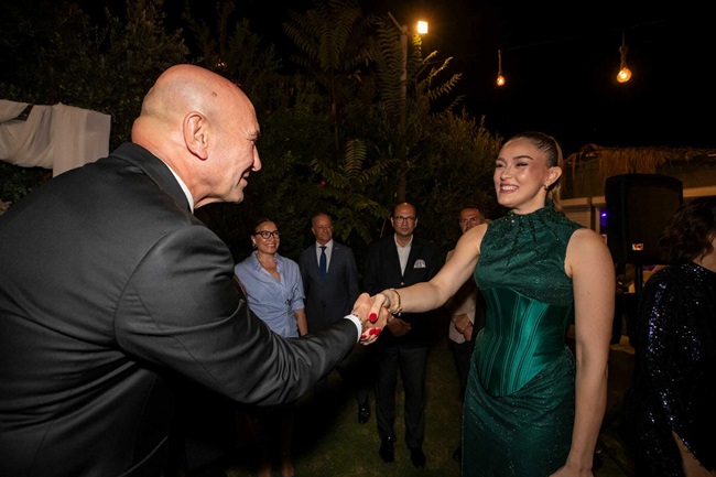 Nikah töreninde genç çifte ömür boyu mutluluk dileyen Başkan Tunç Soyer, “Ben 14 buçuk senedir nikah kıyıyorum ama bu kadar şampiyonun önünde nikah kıymak beni çok heyecanlandırdı. Bize unutulmaz bir zafer yaşatan, bütün Türkiye’ye gurur yaşatan şampiyonlarımız için, onların anısını, zaferini ölümsüz kılmak için önce bir anıt tasarlıyoruz. Sonra da Türkiye Voleybol Federasyonu Başkanı’mızla beraber bu başarıyı sürdürülebilir kılacak bir voleybol lisesi tasarlıyoruz. İzmirliler şampiyonlarımızı asla unutmayacak. Diliyorum ki bütün bir ömür, bu güzel sonbahar akşamında olduğu gibi sevdiklerinizle mutluluk içinde geçsin” ifadelerini kullandı.