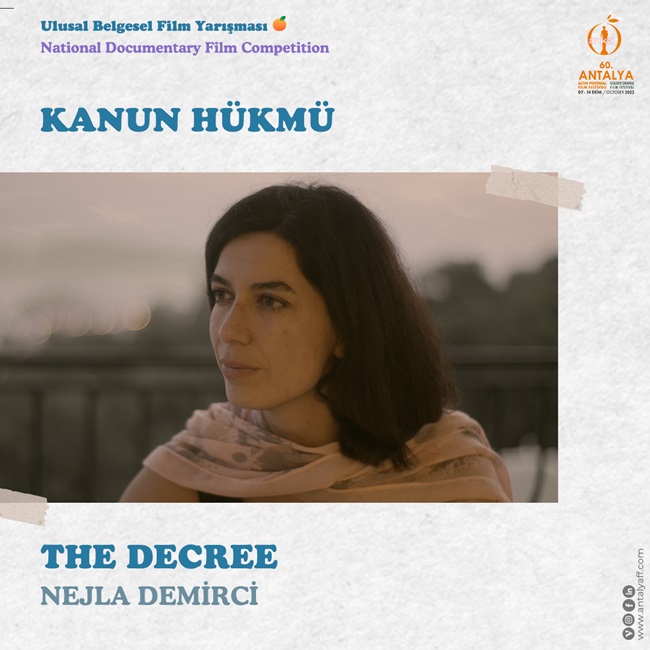 “Kanun Hükmünde Kararnameler ile kamu görevinden çıkarılan doktor Yasemin ve öğretmen Engin'in ihraç sonrası gösterdikleri mücadeleyi anlatan Kanun Hükmü/The Decree belgeselimiz ani bir karar ile 60. Antalya Altın Portakal Film Festivali'nin Ulusal Belgesel Yarışma seçkisinden kaldırıldı. Doktor Yasemin Demirci ve Öğretmen Engin Karataş hakkında kesinleşmiş herhangi bir yargılama söz konusu değilken festival mazeret olarak belgeselin bir karakterinin yargı sürecinde olduğunu iddia ediyor.