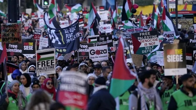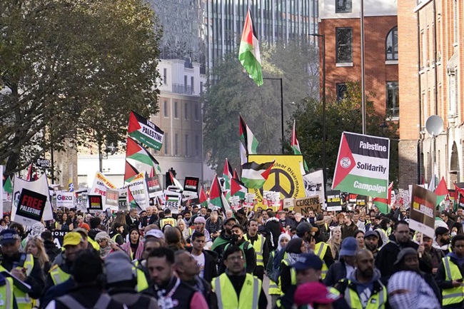 İngiltere'nin başkenti Londra'da yüz binlerce kişi, Filistin'e destek gösterisi düzenledi.