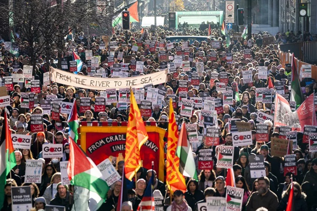 Kent merkezinde gerçekleşen ve polise göre 300 bin kişinin katıldığı barışçıl eylemde Gazze için ateşkes çağrıları yapıldı.