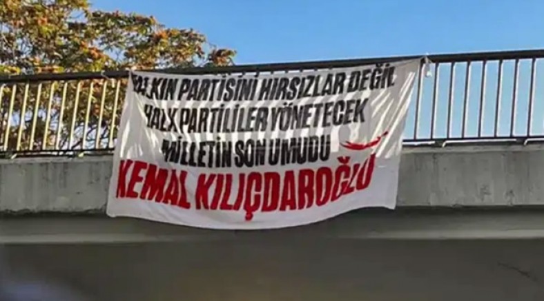 Kadıköy’deki Söğütlüçeşme üst geçidine, üzerinde “Halkın partisini hırsızlar değil halk partililer yönetecek. Milletin son umudu Kemal Kılıçdaroğlu” yazan bir pankart asıldı.