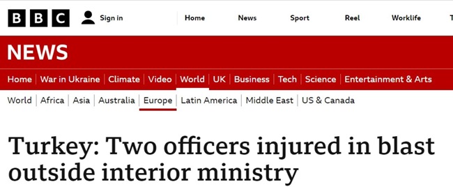 İngiliz kamu yayıncısı BBC, "Türkiye'de bakanlığı hedef alan bombalı intihar saldırısı" ifadesinde bulundu.