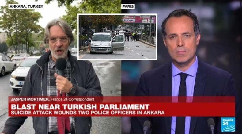 Fransız gazetesi France 24, Ankara'da yaşanan terör saldırısının ardından Kızılay'da canlı yayın gerçekleştirdi.