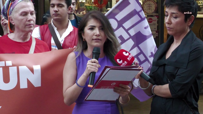 TİP İzmir İl Örgütü, okullarda öğrencilere ücretsiz yemek verilmesi ile ilgili taleplerini dile getirmek için Türkan Saylan Kültür Merkezi önünde basın açıklaması yaptı. Parti üyeleri, kültür merkezi önüne sloganlar eşliğinde geldi.