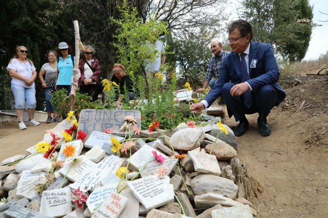Edremit Belediye Başkanı Selman Hasan Arslan’ın konuşmasının ardından Tuncel Kurtiz’in mezarına çiçekler bırakıldı.