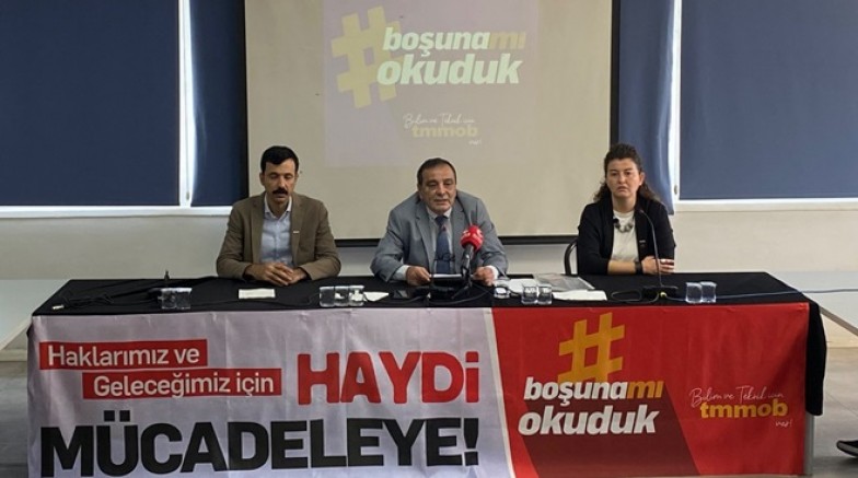 TMMOB, bugün Ankara Mimarlar Odası'nda düzenlenen basın toplantısında mühendis, mimar, şehir plancılığı mesleklerinin itibarsızlaştırılarak iktidarca görmezden gelinmesine karşı haklarını ve geleceğini savunmak için 'Boşuna mı Okuduk' kampanyasını duyurdu. TMMOB Yönetim Kurulu Başkanı Emin Koramaz, 19 Eylül Mühendis, Mimar ve Şehir Plancısı Dayanışma Günü'nde TMMOB'nin tüm illerde sokağa çıkacağını ve mücadeleyi büyüteceklerini bildirerek dayanışma çağrısı yaptı.